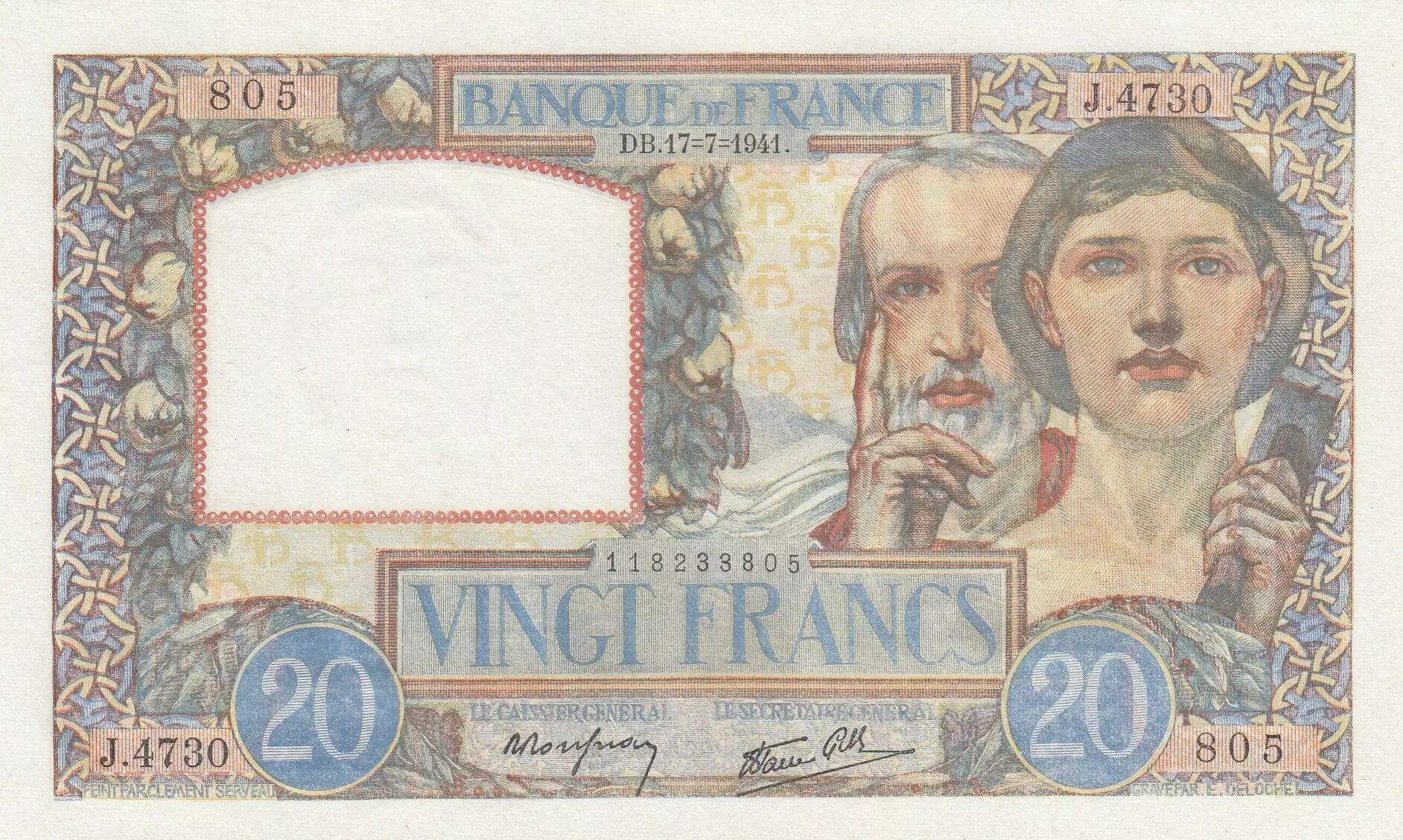 Accueil > Archivage > archivage-Billets Français > France 20 Francs - Science et Travail - 17-07-1941 - Série J.4730