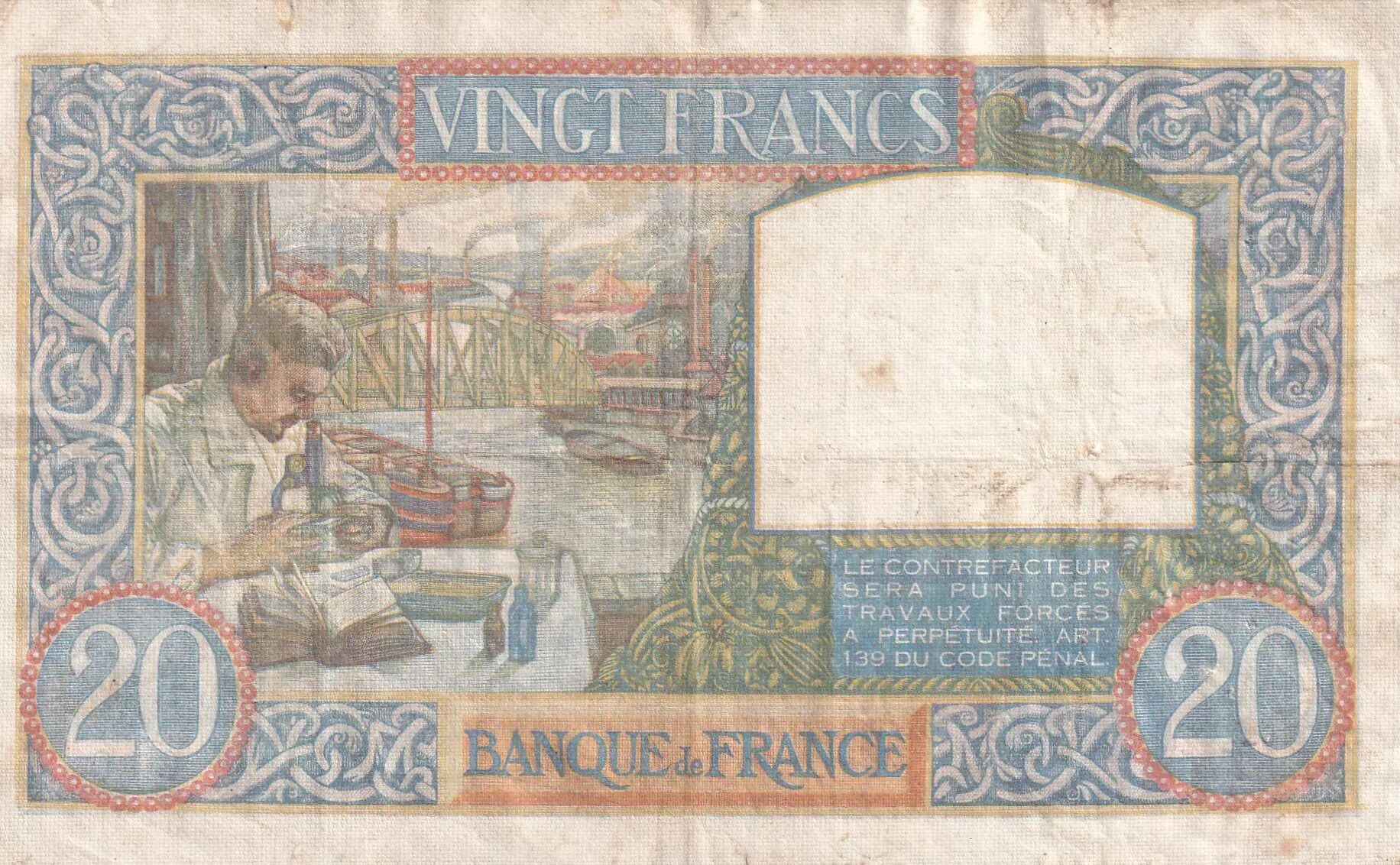 Accueil > Archivage > France 20 Francs - Science et Travail - 18-09-1941 - Série E.5774 - F.12.18