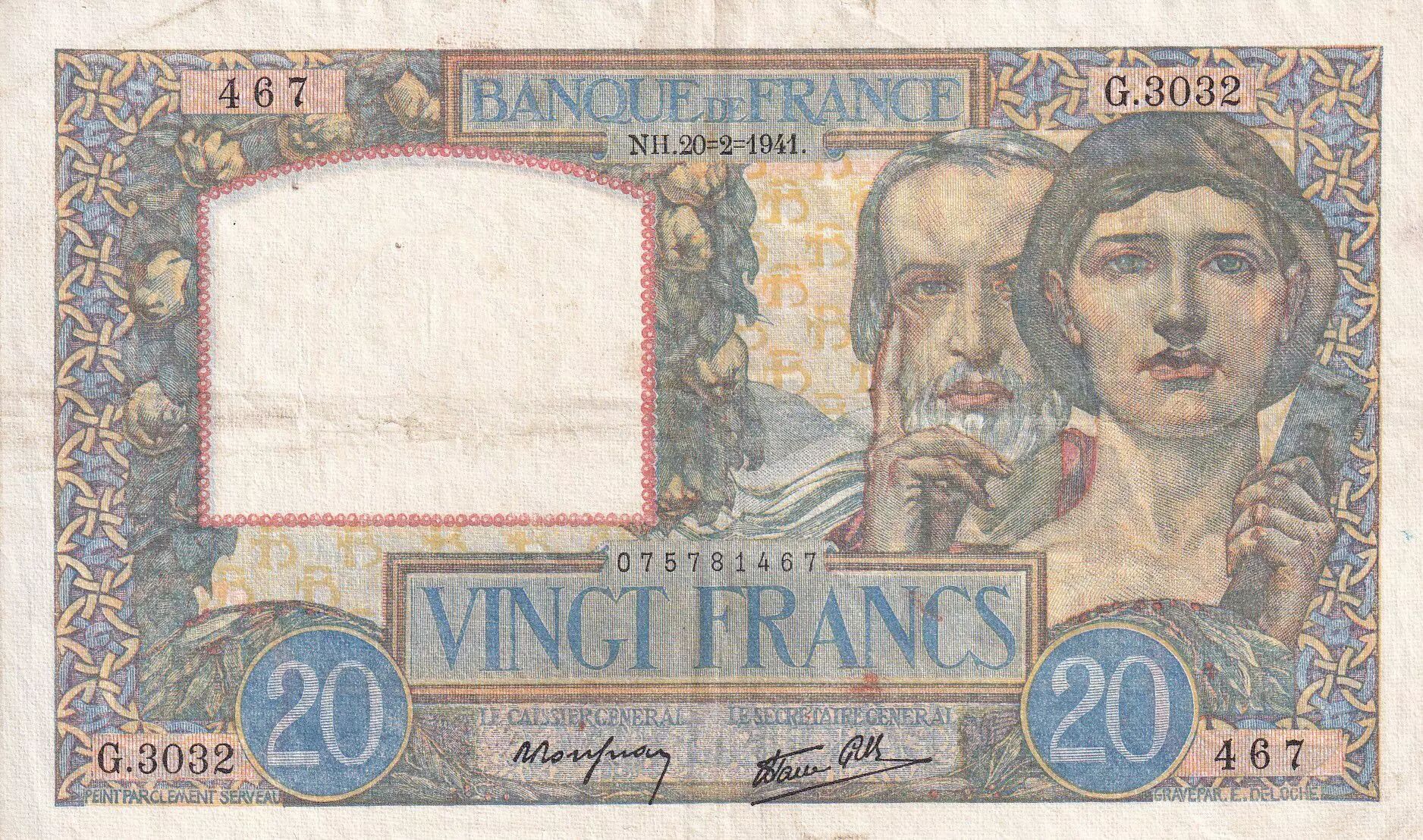 Billet France 20 Francs - Science et Travail - 20-02-1941 - Série G.3032 - TTB+ - F.12.12