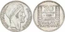 Cette pièce de monnaie est une pièce de 20 francs, frappée en argent et émise par la France. Elle date de l'année 1938.