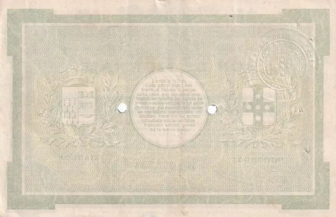Ce billet présente des traces d'annulation, visibles par des perforations. Ces perforations indiquent que le billet a été retiré de la circulation après avoir été utilisé.