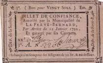 Banknote France 20 Sols - Sarthe - Municipalité de La-Ferté-Bernard - 12-01-1792