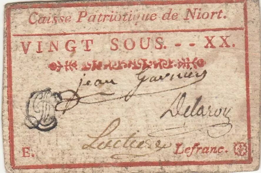 Home > French Banknotes > Necessity Money (1789-1945) > Confidence Notes 1789-1793 > France 20 sous - Deux-Sèvres - Patriotic fund of Niort - Not founded