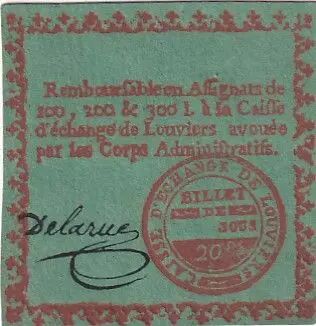 Home > French Banknotes > Necessity Money (1789-1945) > Confidence Notes 1789-1793 > France 20 Sous - Eure - Caisse d'échange de Louviers - 1792
