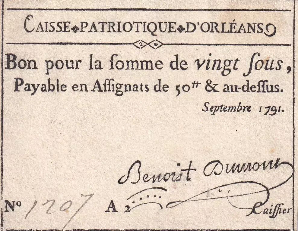 Banknote France 20 Sous - Loiret - Caisse patriotique Orléans - Septembre 1791