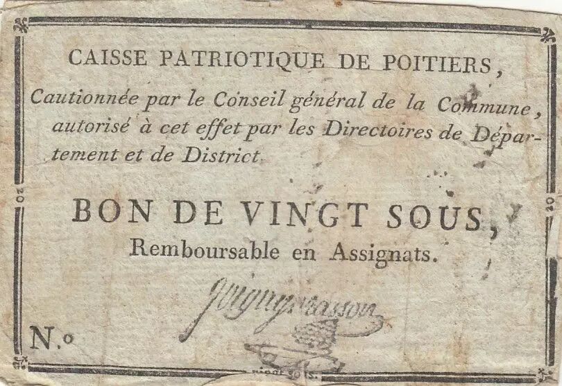 Banknote France 20 sous - Vienne - Poitiers - 1791