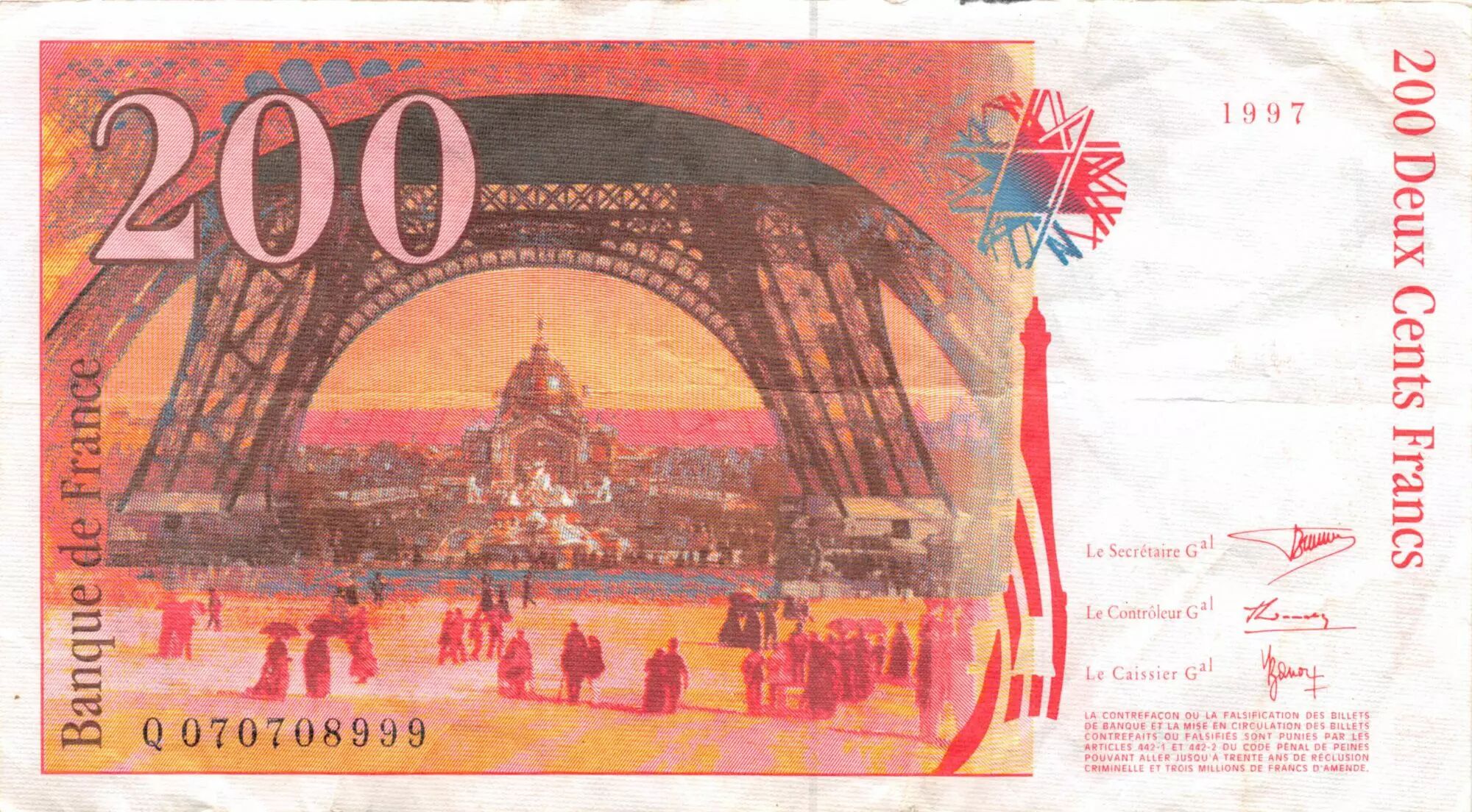 Accueil > Archivage > France 200 Francs Gustave Eiffel 1997 - Tour Eiffel - Séries diverses - TTB