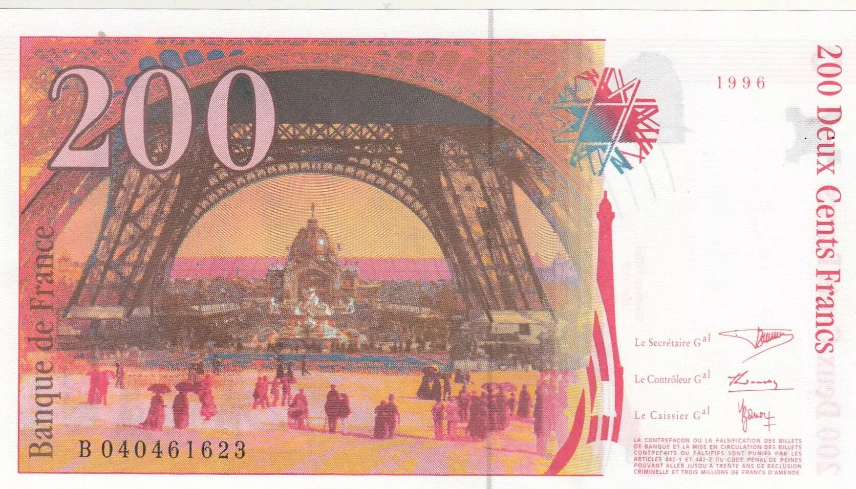 Banknote France 200 Francs - Gustave Eiffel - Eiffel Tower - 1995 - Serial B.040