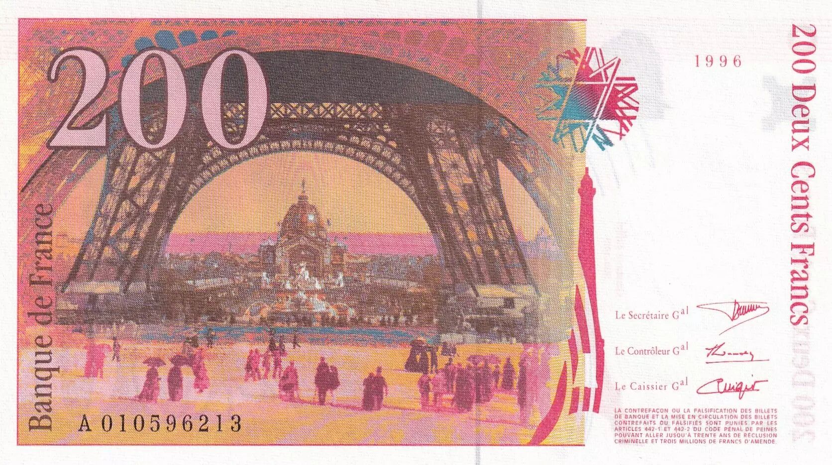 Home > French Banknotes > Bank of France Banknotes > 200 Francs Banknotes > Eiffel type 1995 (1995-1999) > France 200 Francs - Gustave Eiffel - Eiffel tower- 1996 - Lettre H - P.159