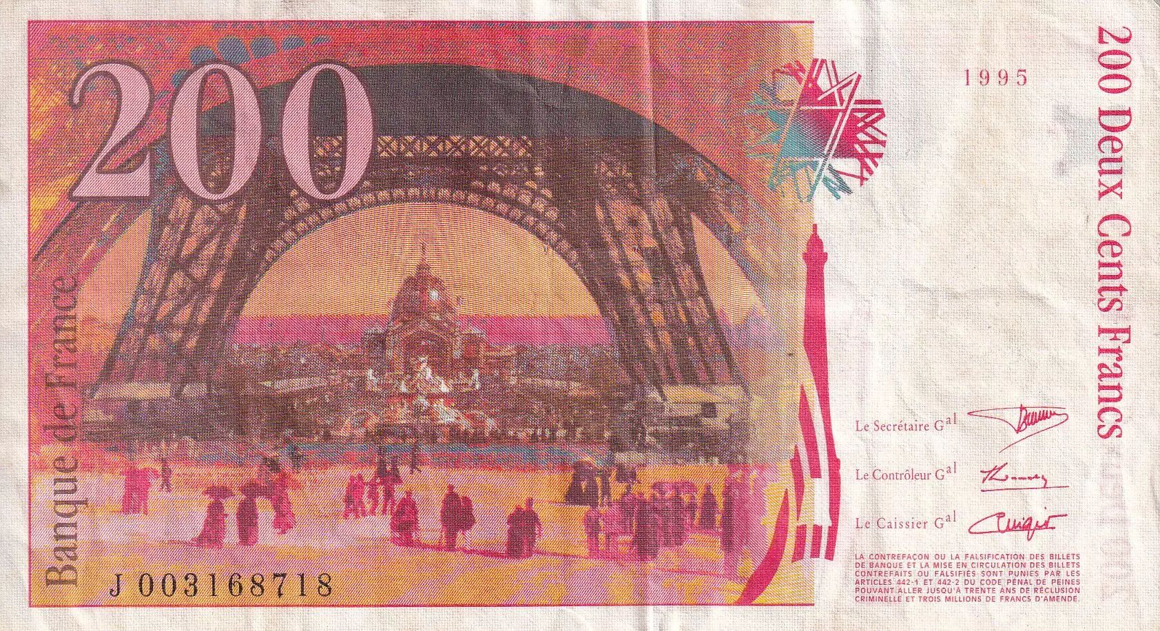 Accueil > Archivage > France 200 Francs - Gustave Eiffel - Tour Eiffel - 1995 - Lettre J - F.75.01