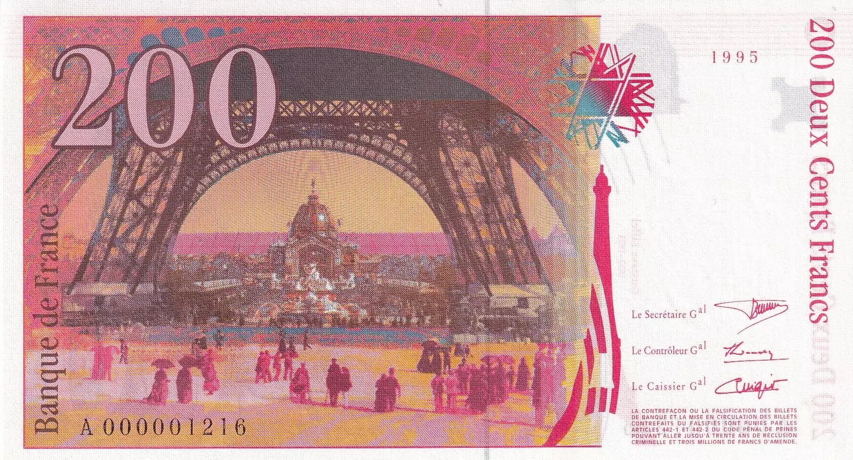 Accueil > Archivage > France 200 Francs - Gustave Eiffel - Tour Eiffel - 1995 - Numéro A000001216 - F.75.01