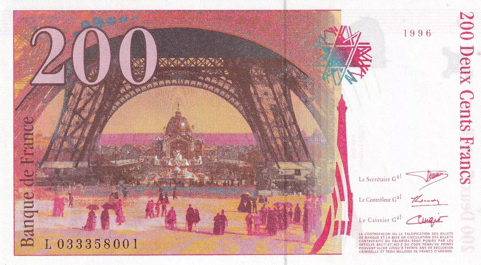 Accueil > Archivage > France 200 Francs - Gustave Eiffel - Tour Eiffel - 1996 - Lettre L - F.75.02