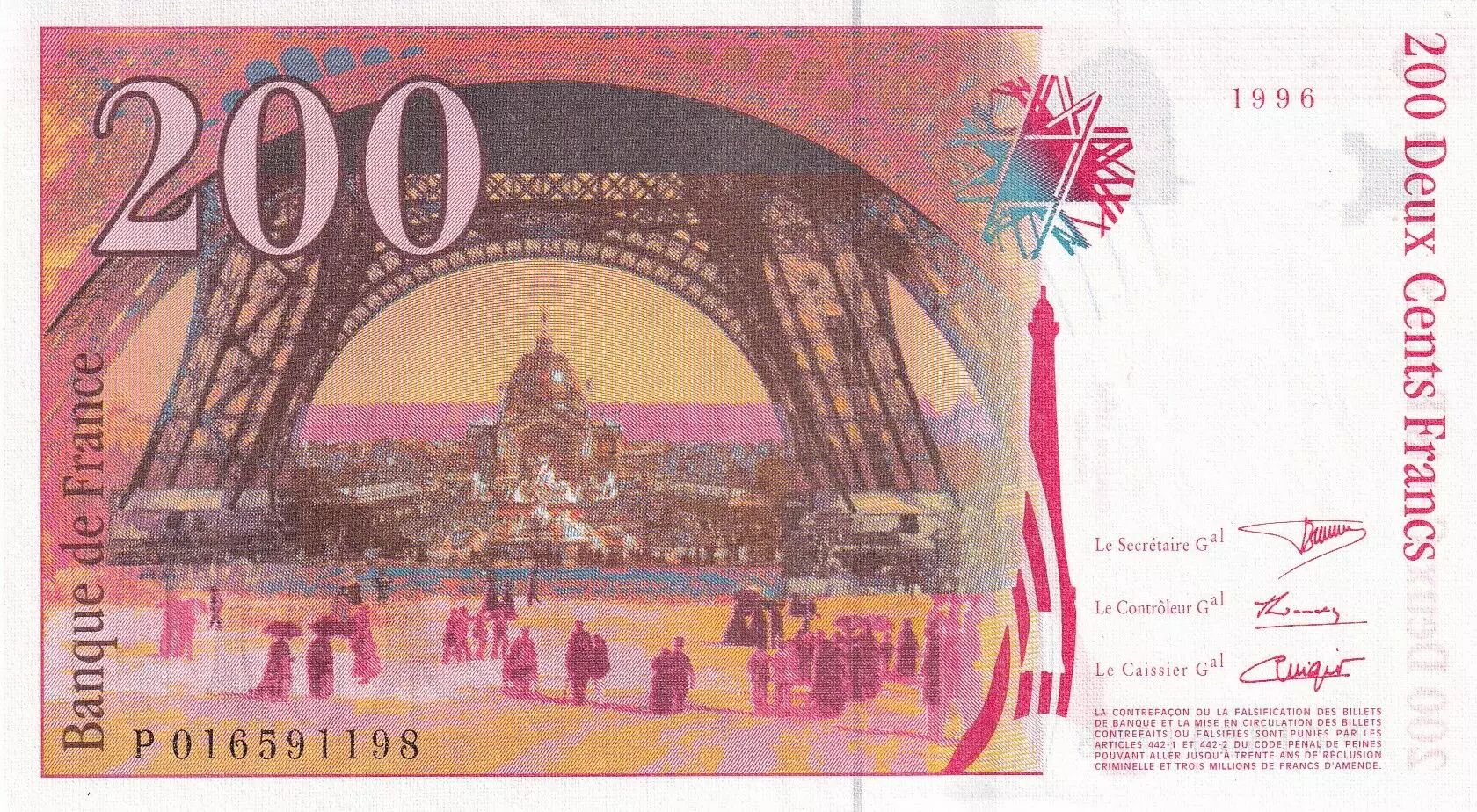 Accueil > Archivage > France 200 Francs - Gustave Eiffel - Tour Eiffel - 1996 - Lettre P - F.75.02