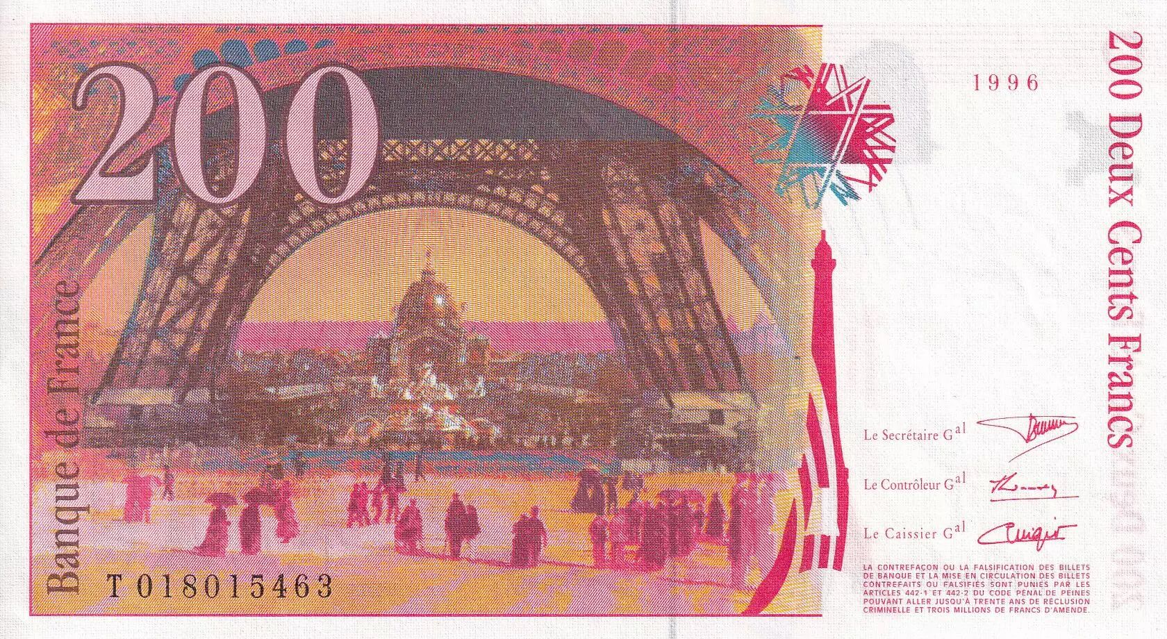 Accueil > Archivage > France 200 Francs - Gustave Eiffel - Tour Eiffel - 1996 - Lettre T - P.NEUF - F.75.02