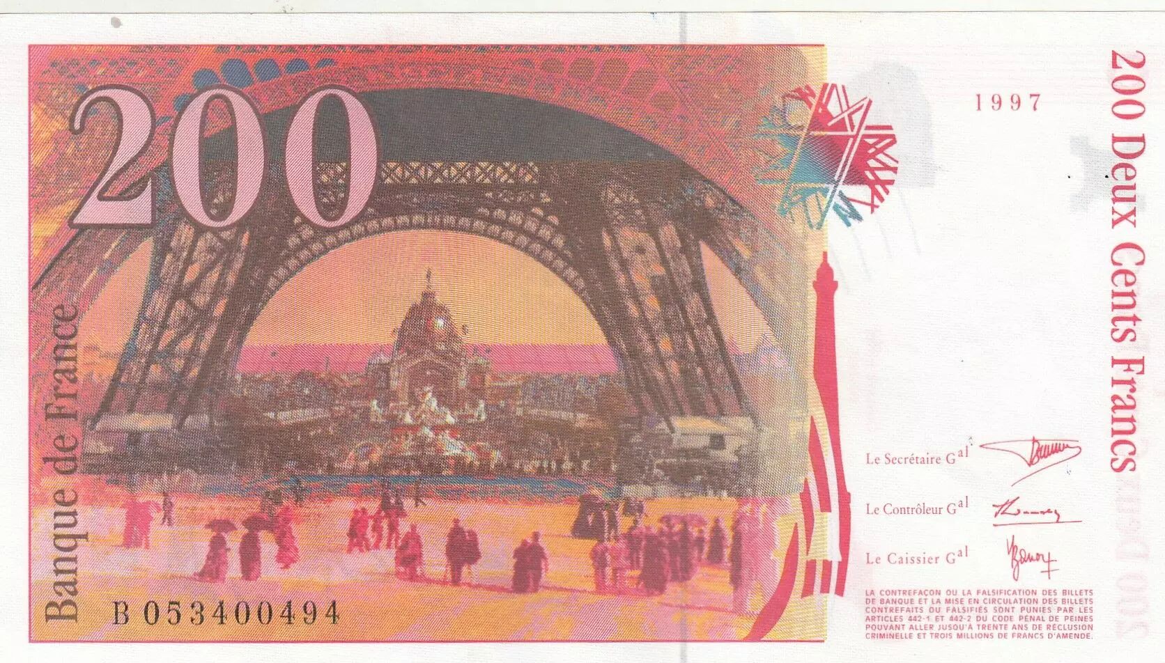Home > French Banknotes > Bank of France Banknotes > 200 Francs Banknotes > France 200 Francs - Gustave Eiffel - Tour Eiffel - 1996 - Serial B.053