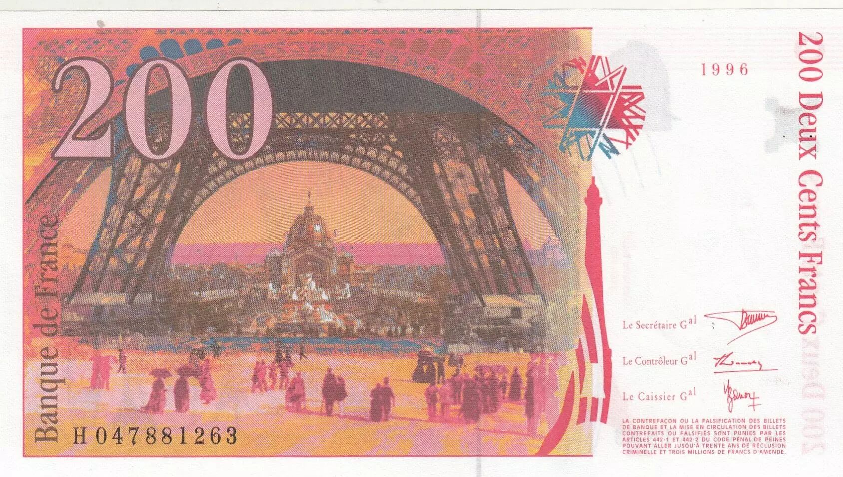 Home > French Banknotes > Bank of France Banknotes > 200 Francs Banknotes > France 200 Francs - Gustave Eiffel - Tour Eiffel - 1996 - Serial H.047
