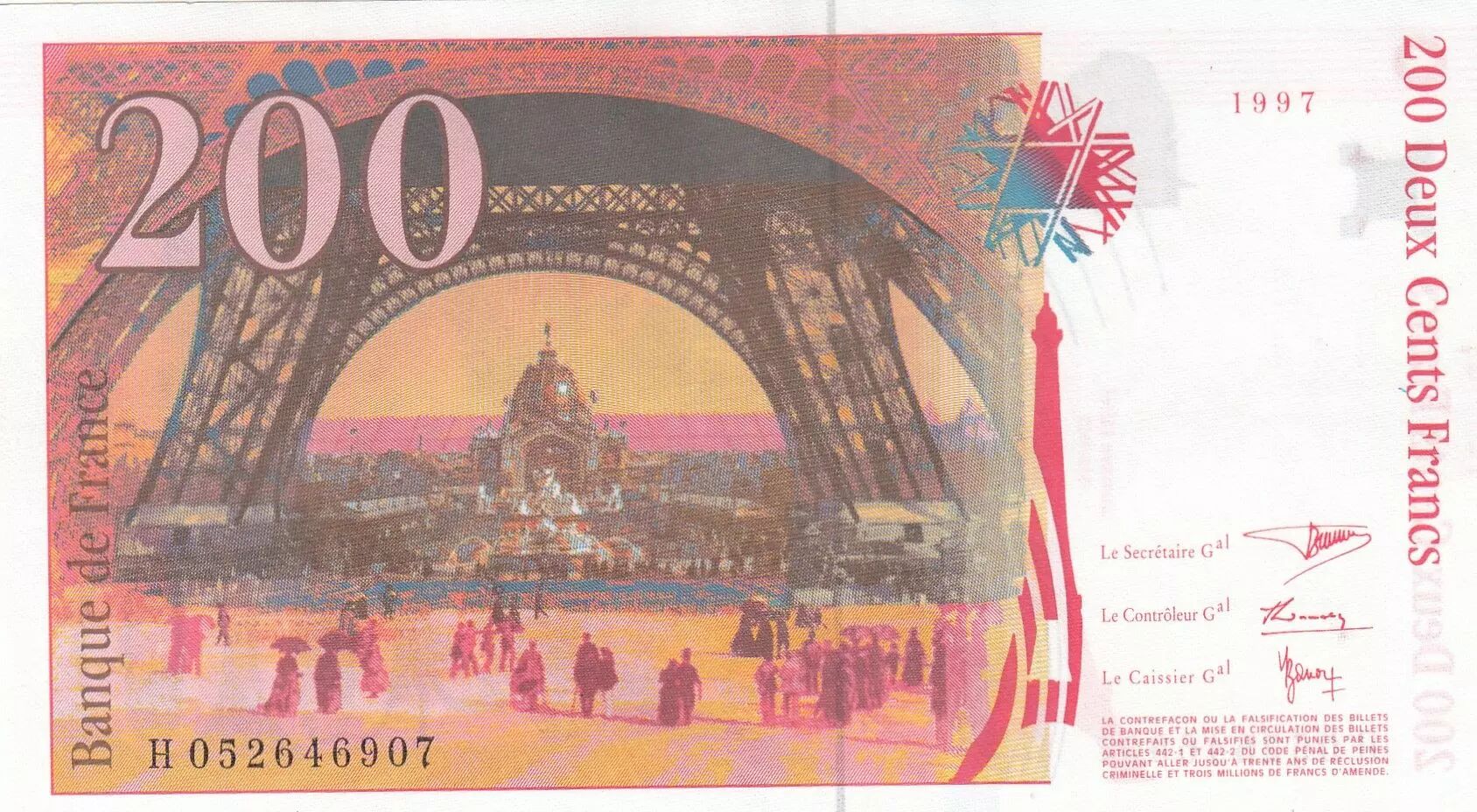 Home > French Banknotes > Bank of France Banknotes > 200 Francs Banknotes > France 200 Francs - Gustave Eiffel - Tour Eiffel - 1996 - Serial H.052