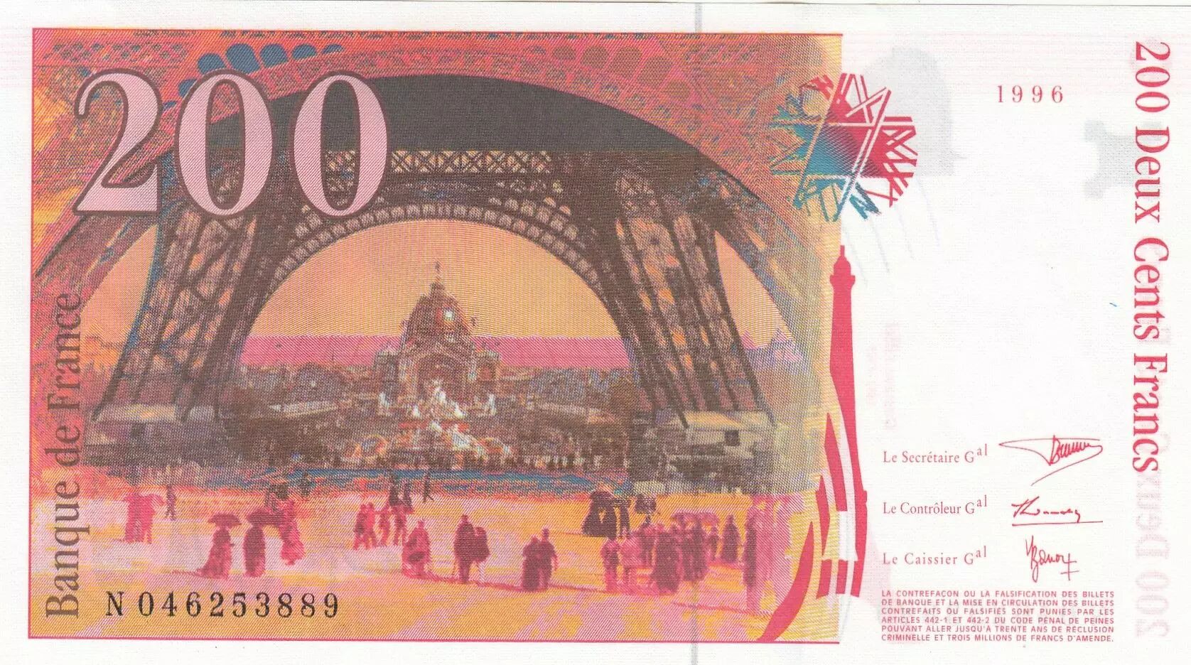 Home > French Banknotes > Bank of France Banknotes > 200 Francs Banknotes > France 200 Francs - Gustave Eiffel - Tour Eiffel - 1996 - Serial N.046