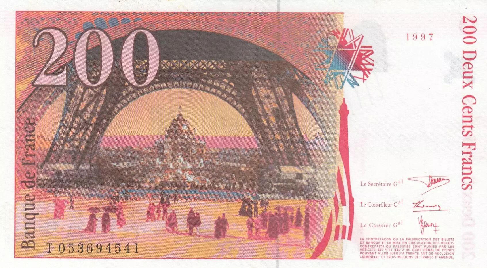 Home > French Banknotes > Bank of France Banknotes > 200 Francs Banknotes > France 200 Francs - Gustave Eiffel - Tour Eiffel - 1996 - Serial T.053