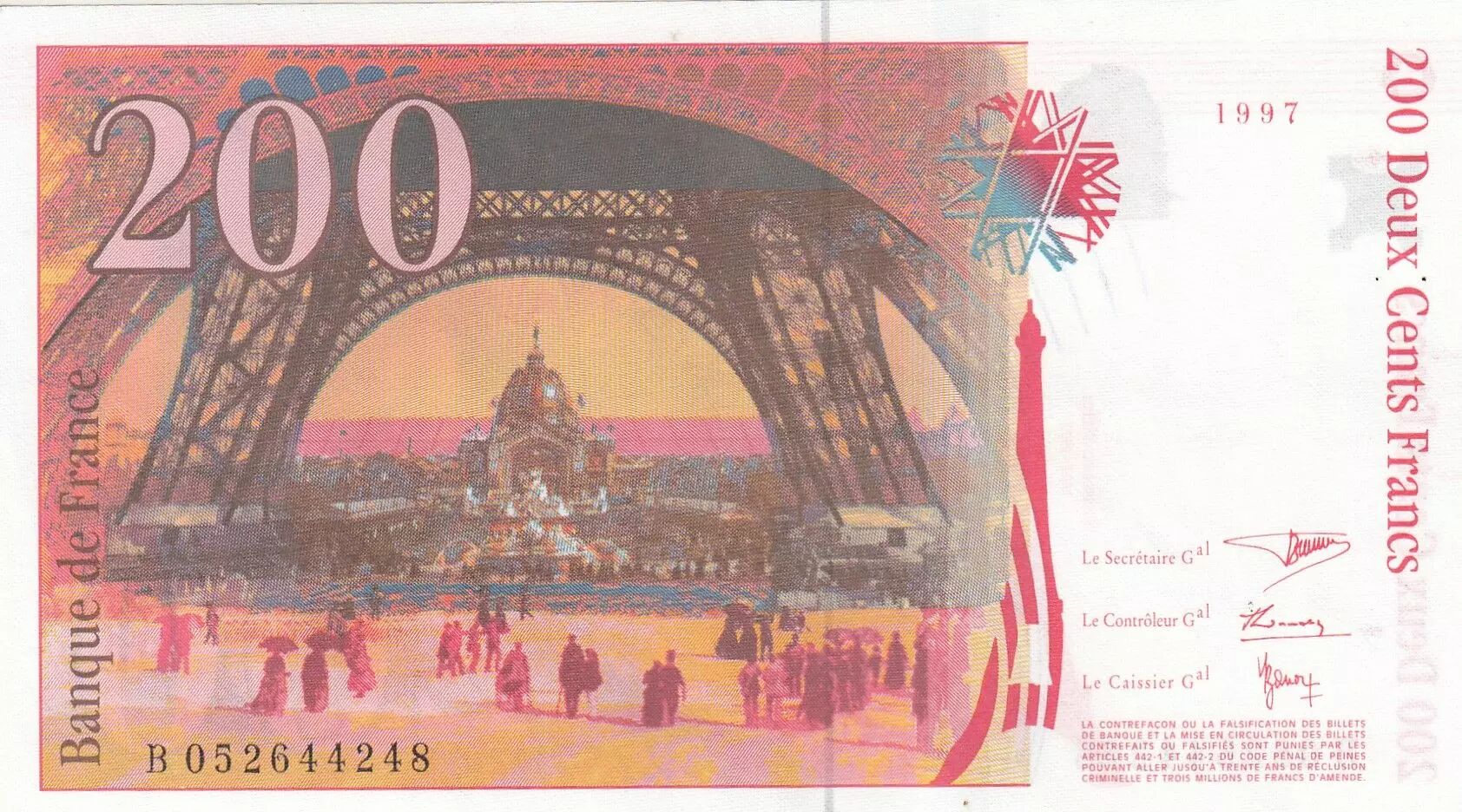 Accueil > Archivage > France 200 Francs - Gustave Eiffel - Tour Eiffel - 1996 - Série B.052