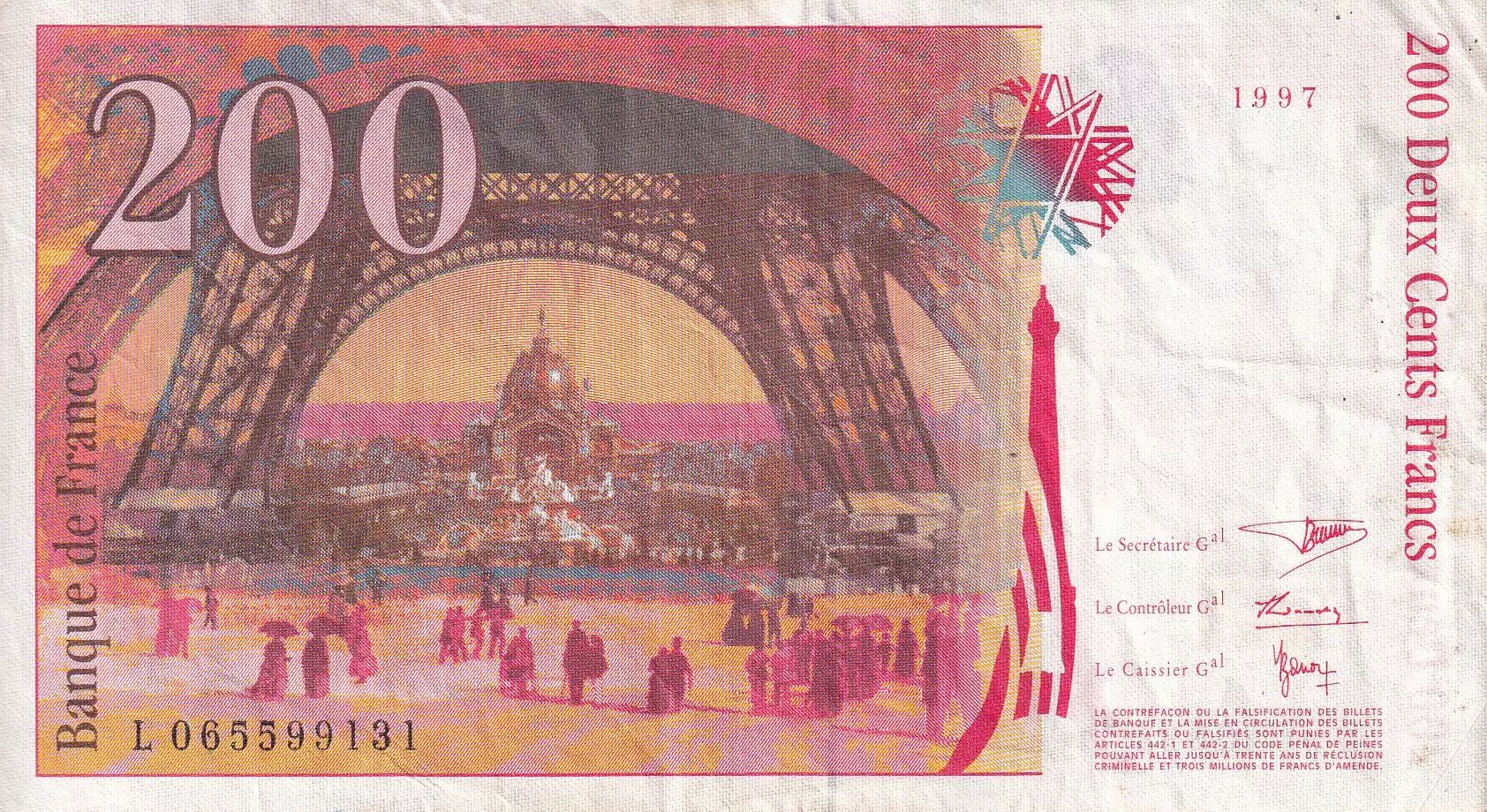 Accueil > Archivage > France 200 Francs - Gustave Eiffel - Tour Eiffel - 1997 - Lettre L - F.75.04b