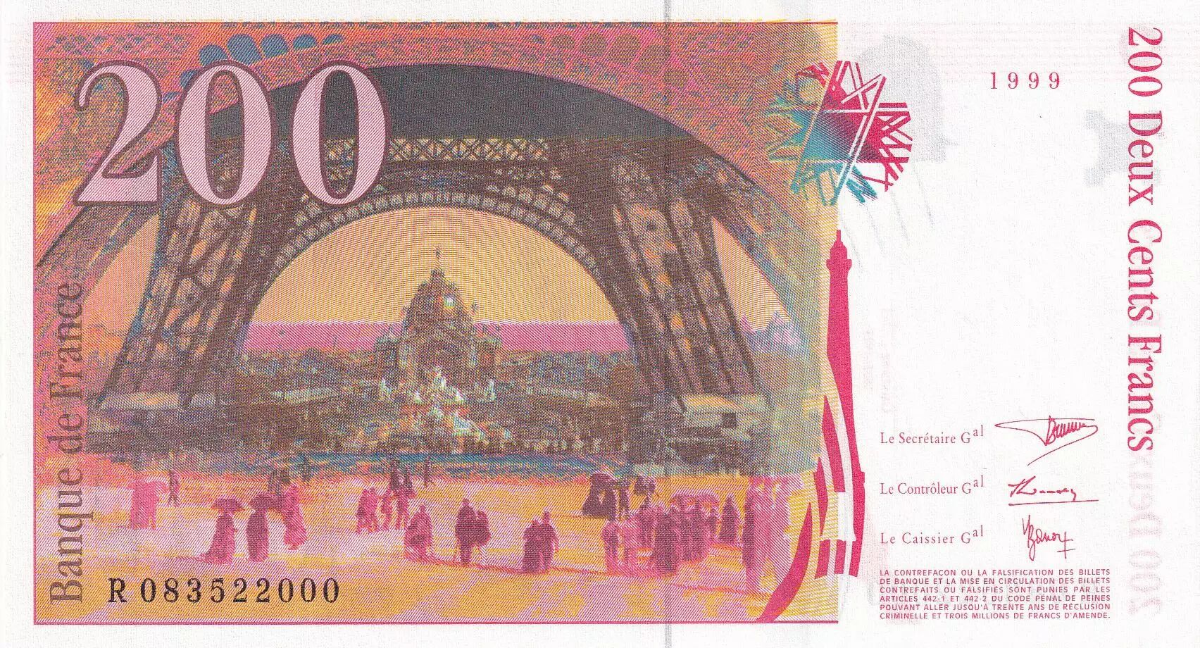 Accueil > Archivage > France 200 Francs - Gustave Eiffel - Tour Eiffel - 1999 - Lettre R - F.75.05