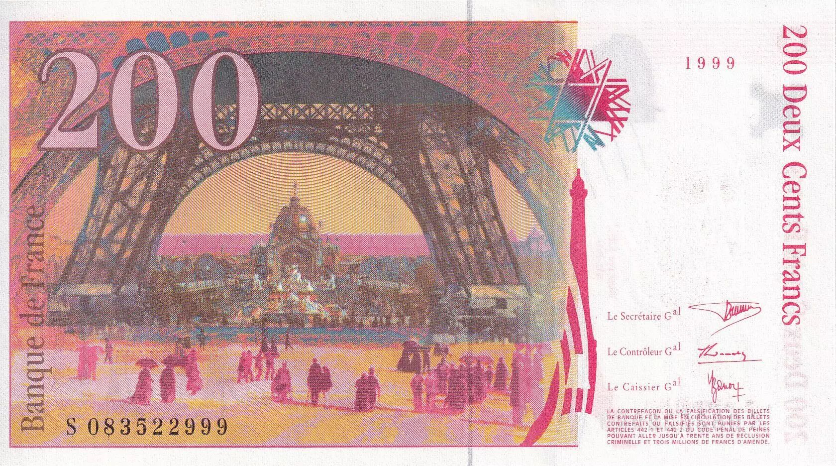 Accueil > Archivage > France 200 Francs - Gustave Eiffel - Tour Eiffel - 1999 - Lettre S - F.75.05