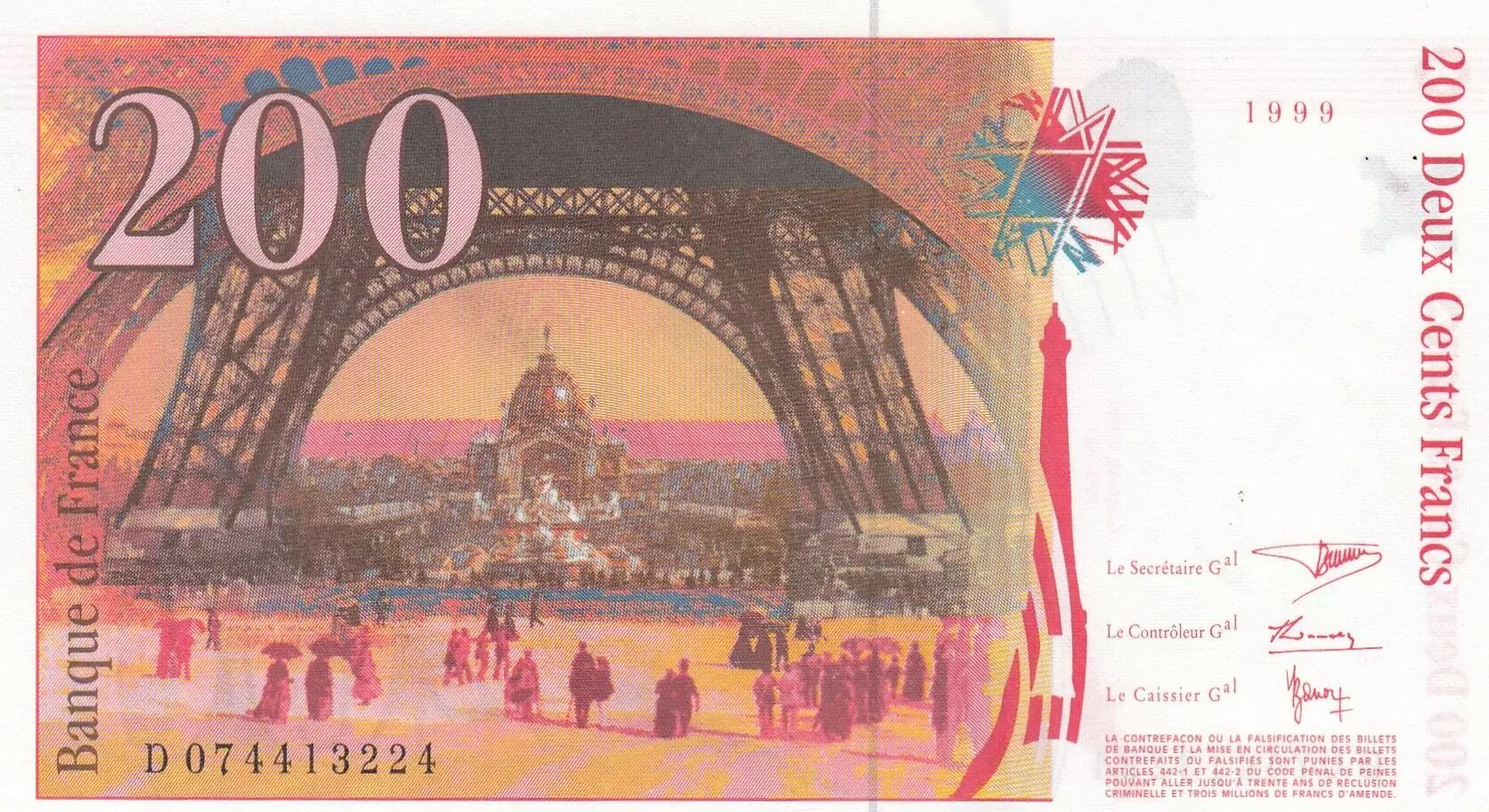 Home > French Banknotes > Bank of France Banknotes > 200 Francs Banknotes > Eiffel type 1995 (1995-1999) > France 200 Francs - Gustave Eiffel - Tour Eiffel - 1999 - Serial D.074