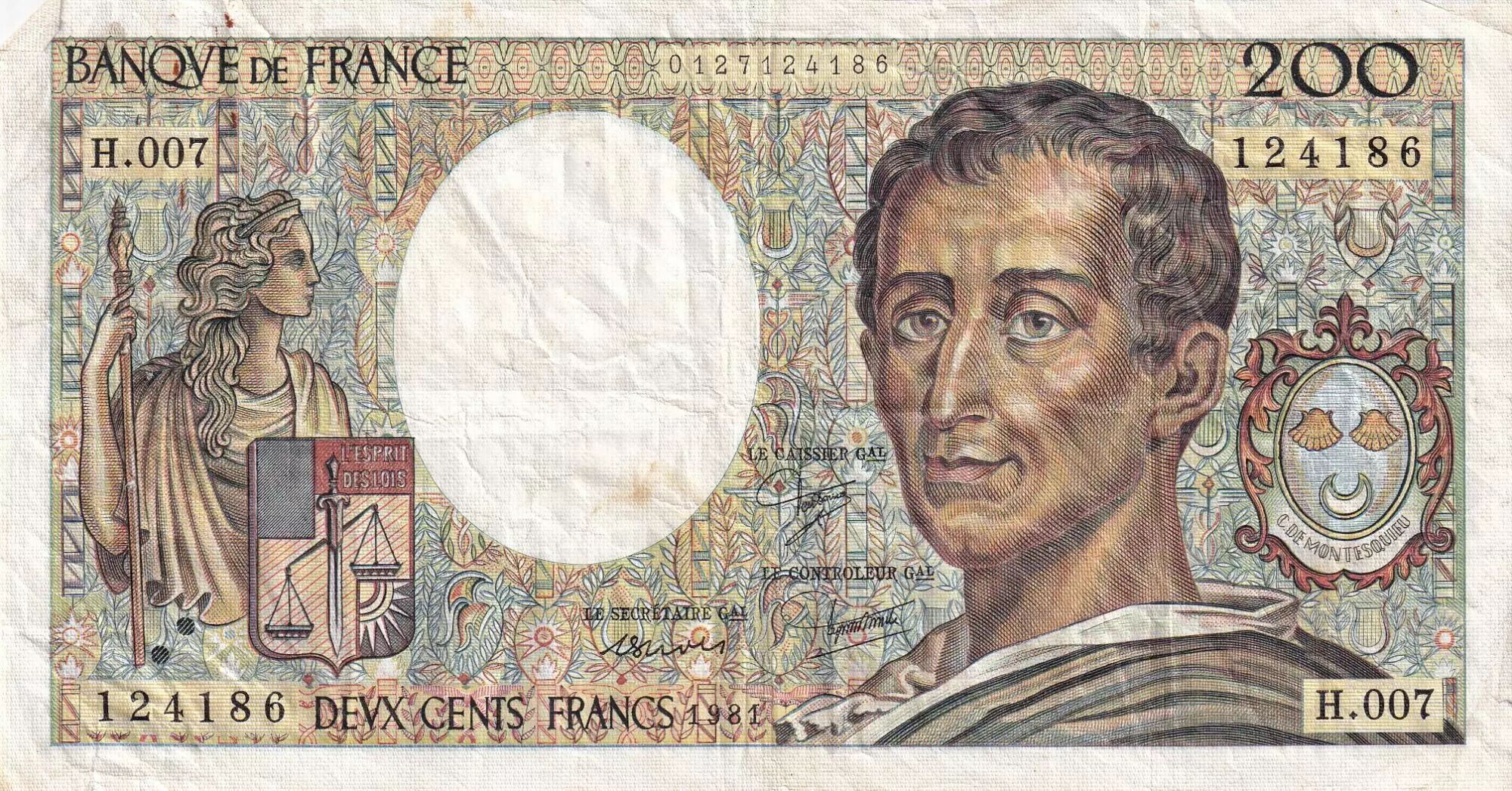 Folds, pinholes, stains, tasks, small cuts, used banknote