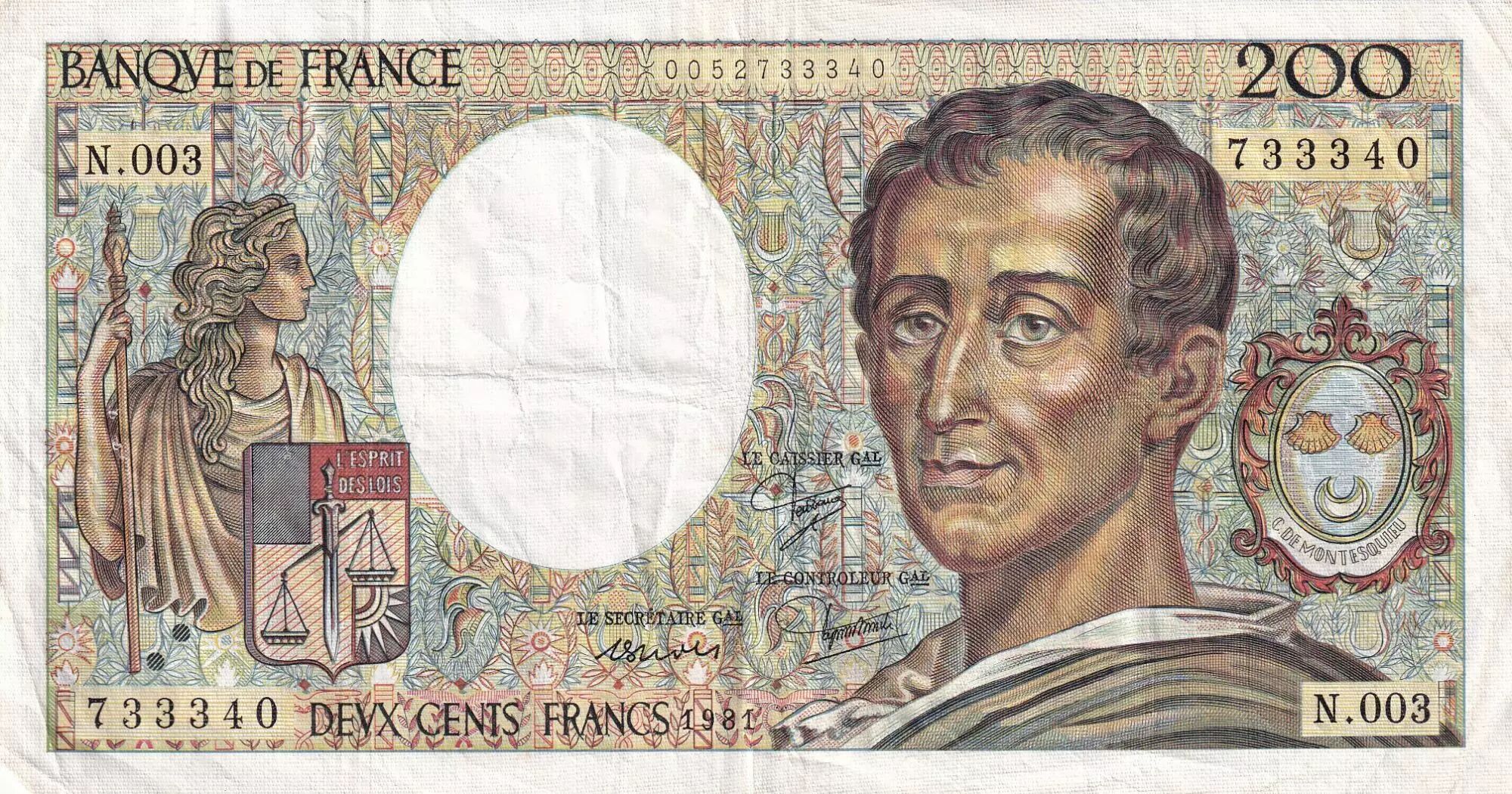 Home > > France 200 Francs - Montesquieu - 1981 - Serial N.003