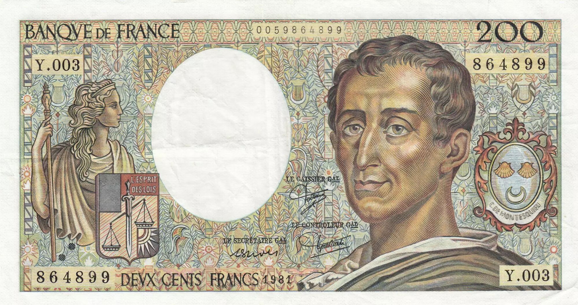 Accueil > Archivage > archivage-Billets Français > France 200 Francs - Montesquieu - 1981 - Série Y.003