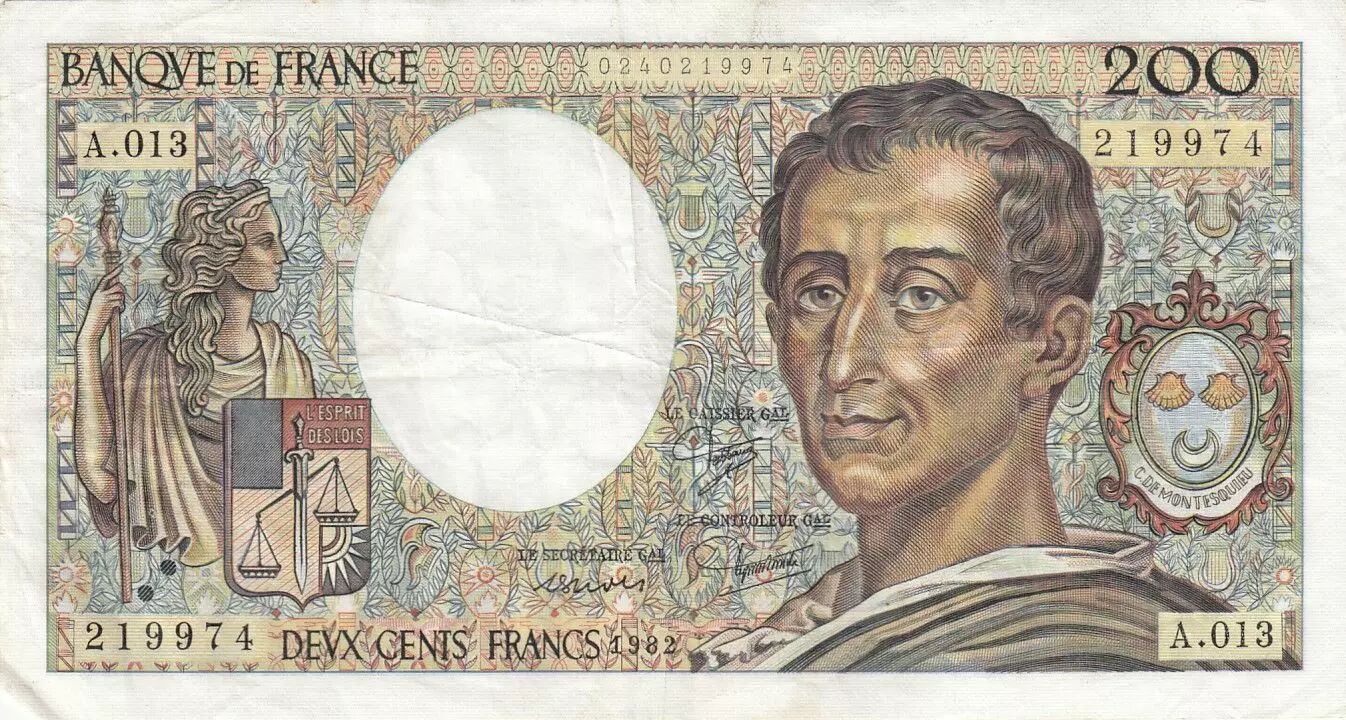 Banknote France 200 Francs - Montesquieu - 1982 - Serial A.013