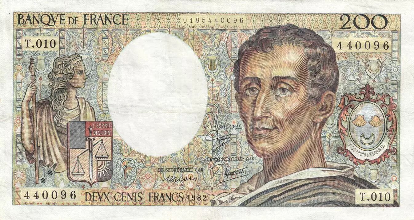 Accueil > Archivage > archivage-Billets Français > France 200 Francs - Montesquieu - 1982 - Série T.010