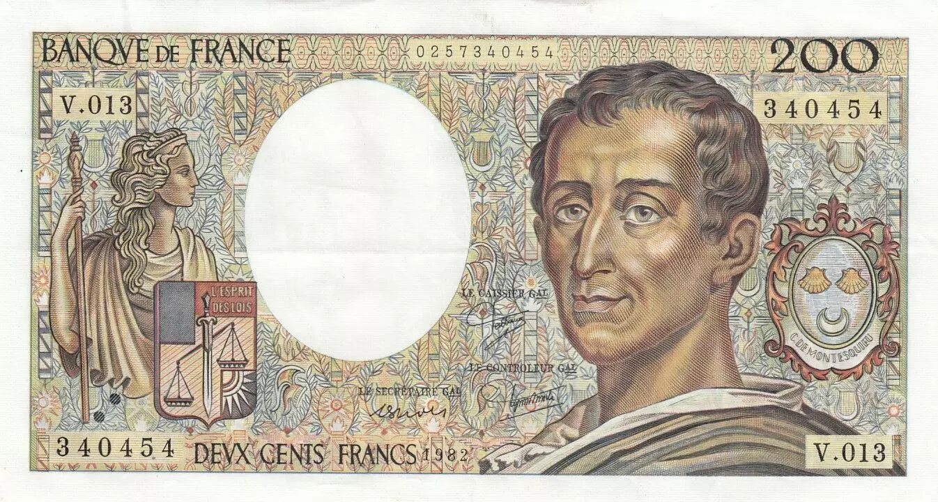 Accueil > Archivage > archivage-Billets Français > France 200 Francs - Montesquieu - 1982 - Série V.013 - F.70.02