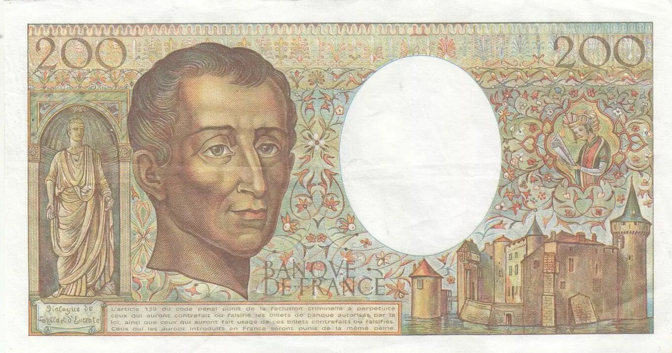 Accueil > Archivage > archivage-Billets Français > France 200 Francs - Montesquieu - 1982 - Série X.013 - F.70.02