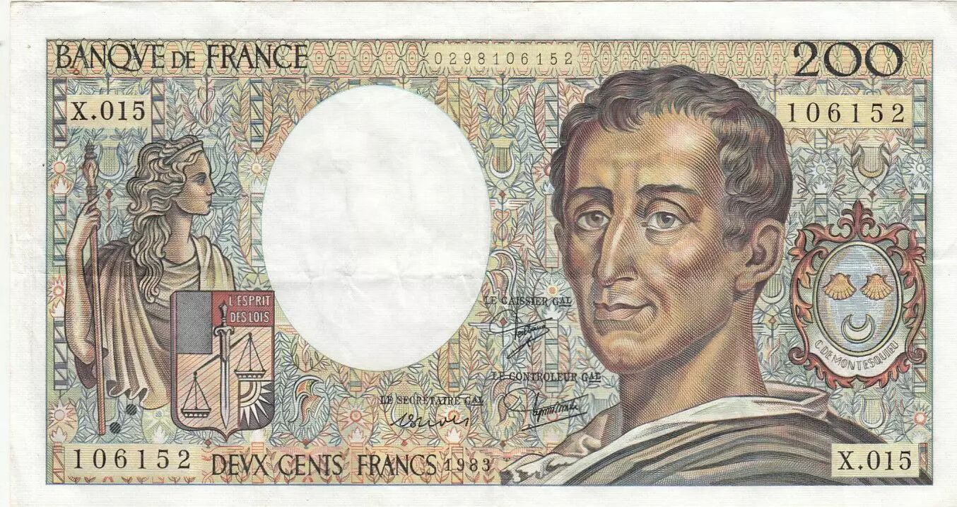 Accueil > Archivage > archivage-Billets Français > France 200 Francs - Montesquieu - 1983 - Série X.015 - F.70.03