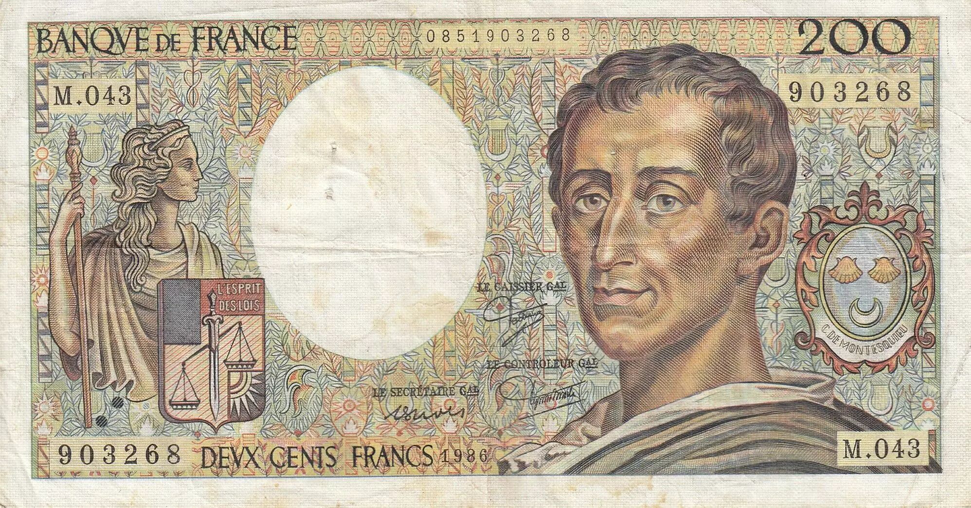Home > > France 200 Francs - Montesquieu - 1986 - Serial M.043