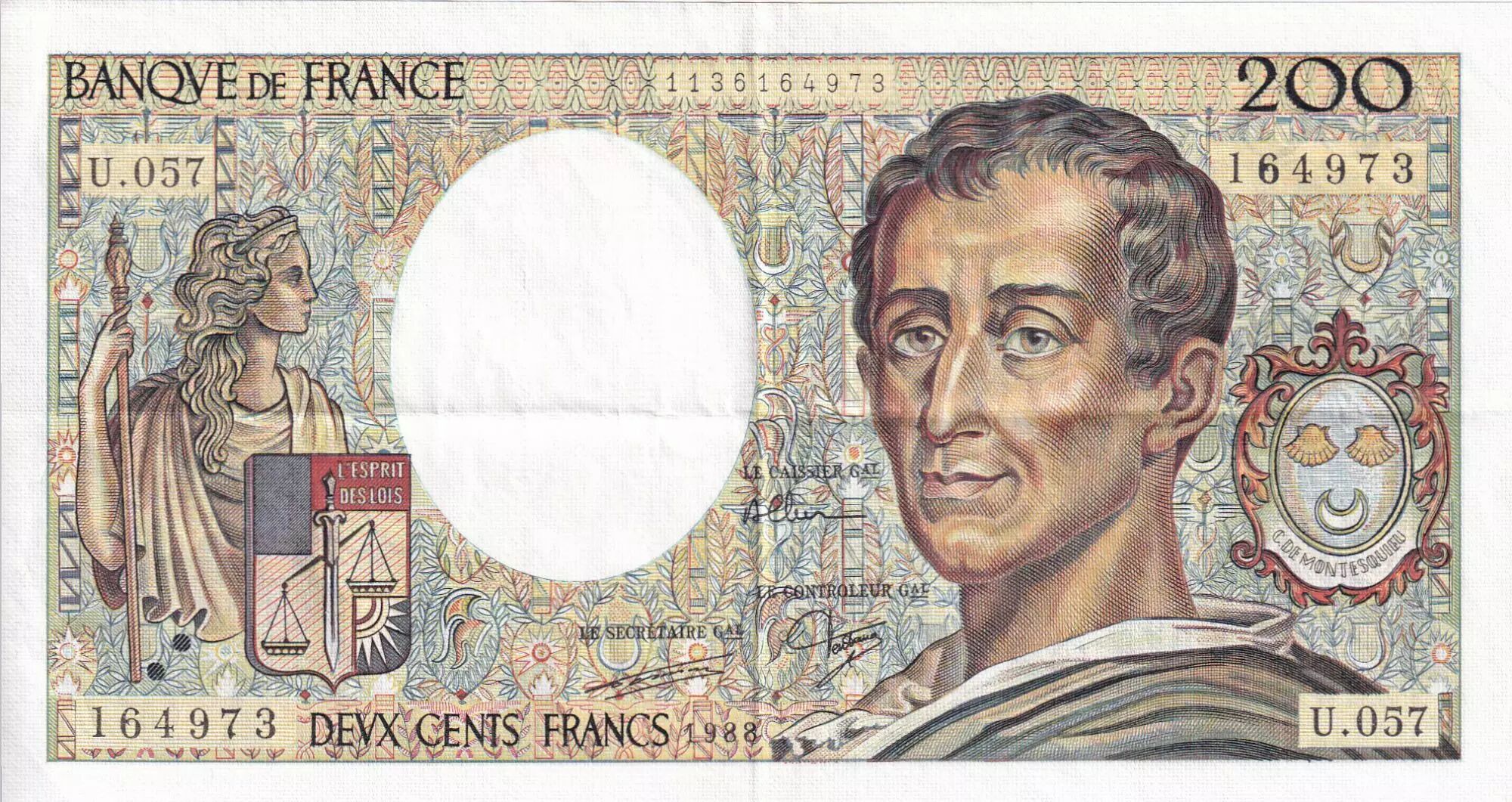 Banknote France 200 Francs - Montesquieu - 1988 - Serial U.057 - P.155