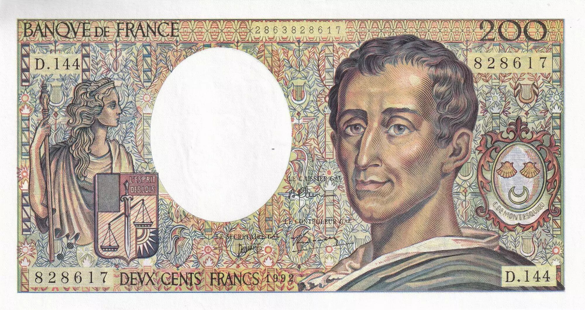 Home > > France 200 Francs - Montesquieu - 1992 - Serial D.144 - F.70.12c