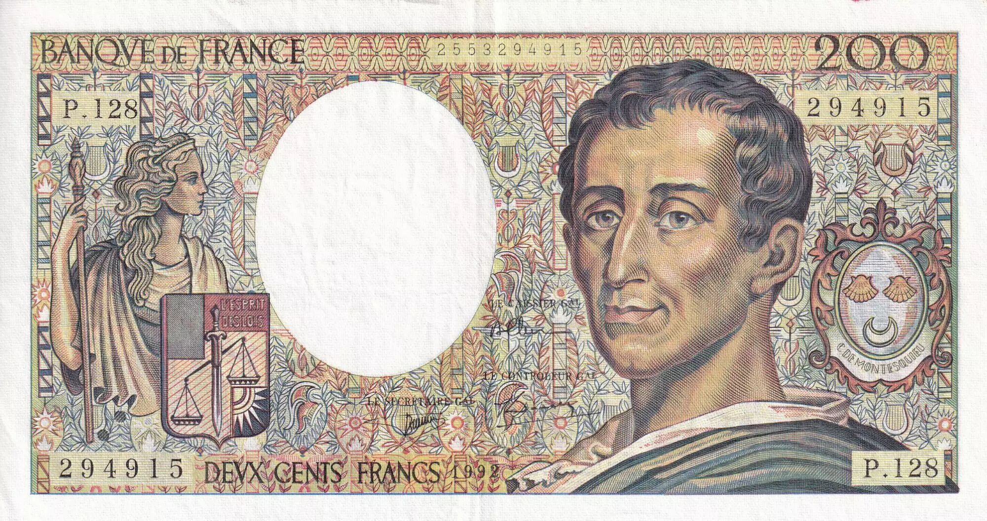Banknote France 200 Francs - Montesquieu - 1992 - Serial P.128 - P.155