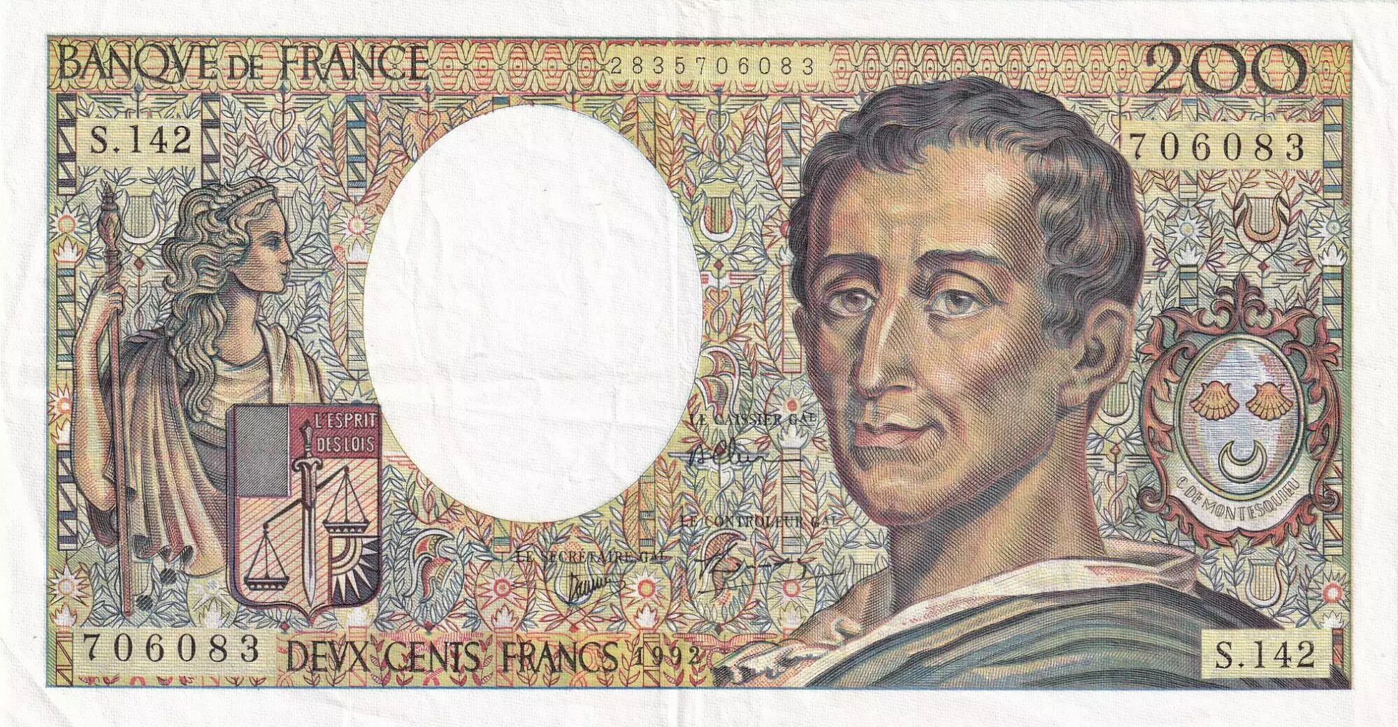 Banknote France 200 Francs Montesquieu - 1992 - Serial S.142
