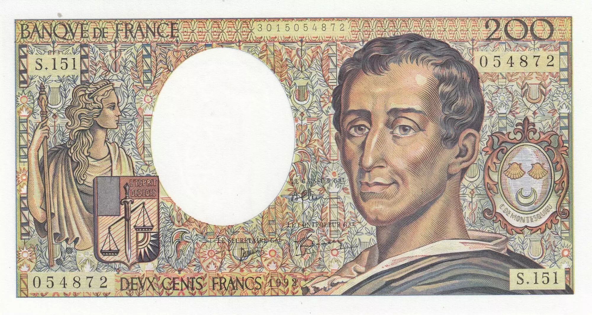Banknote France 200 Francs Montesquieu - 1992 - Serial S.151