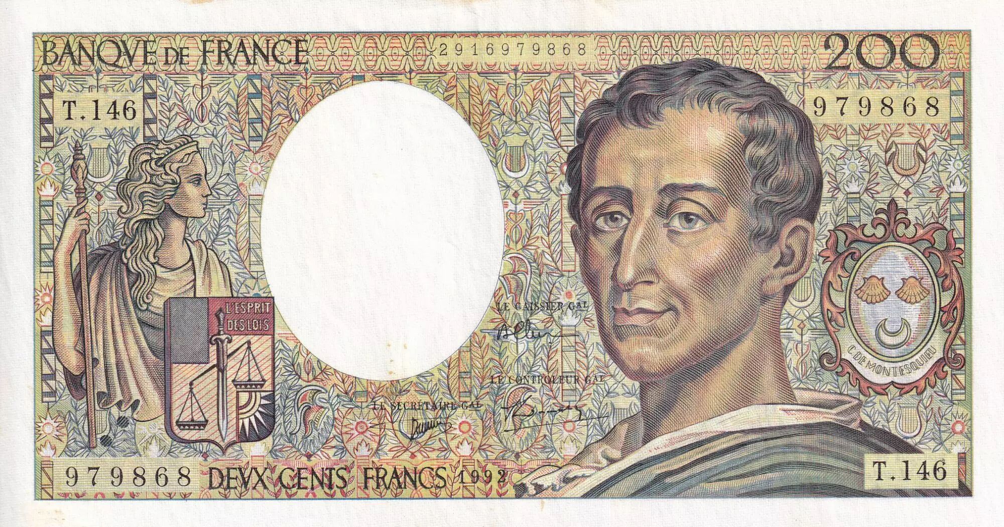 Banknote France 200 Francs - Montesquieu - 1992 - Serial T.146 - P.155