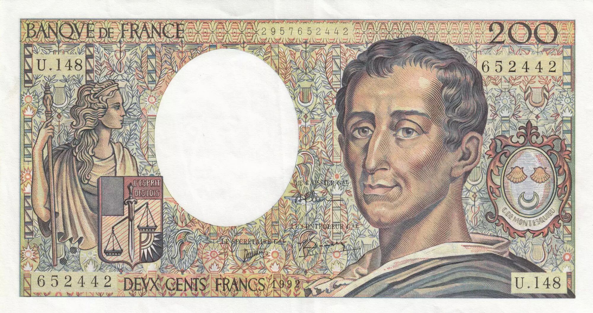 Banknote France 200 Francs Montesquieu - 1992 Serial U.148