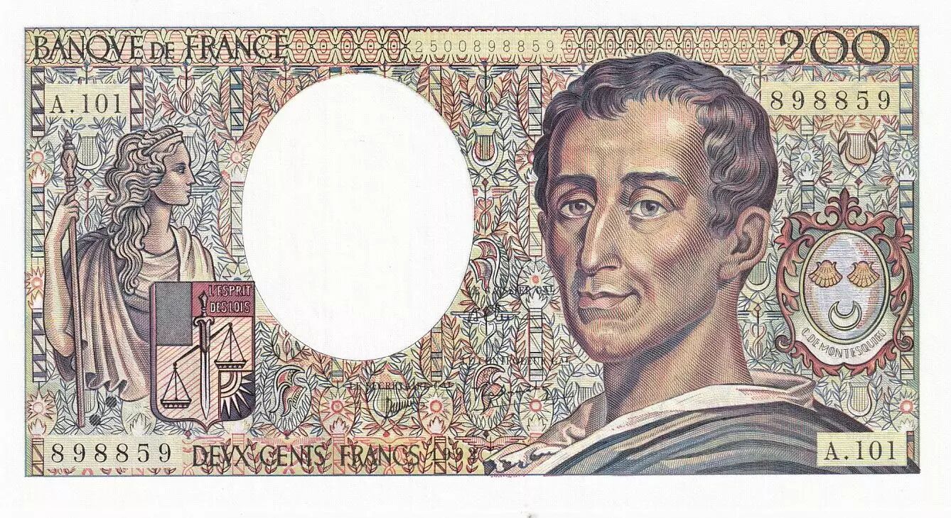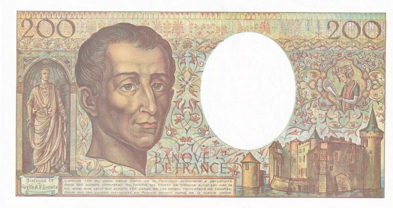 Ce billet rend hommage à Montesquieu, figure emblématique de la philosophie des Lumières. Le design du billet intègre des éléments visuels liés à sa vie et à son ?uvre, témoignant de son influence sur la pensée politique et juridique. Le choix de Montesquieu pour figurer sur ce billet reflète l'importance accordée à la pensée critique et aux valeurs républicaines.
