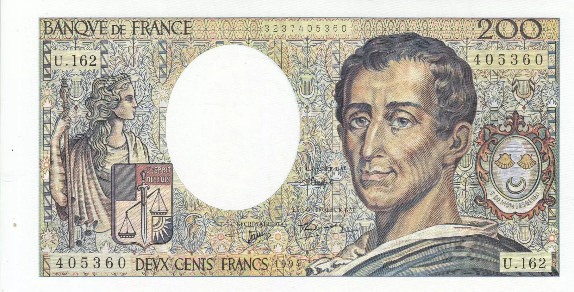 Banknote France 200 Francs - Montesquieu - 1994 - Serial U.162