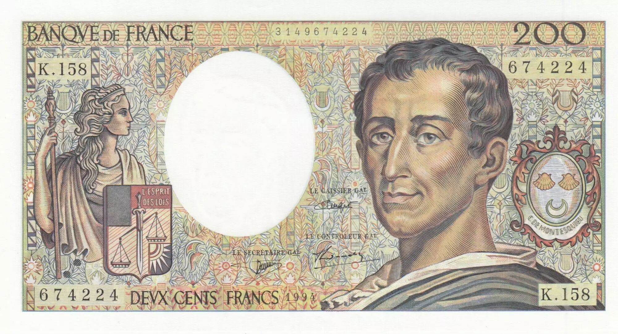 Accueil > Archivage > archivage-Billets Français > France 200 Francs - Montesquieu - 1994 - Série K.158