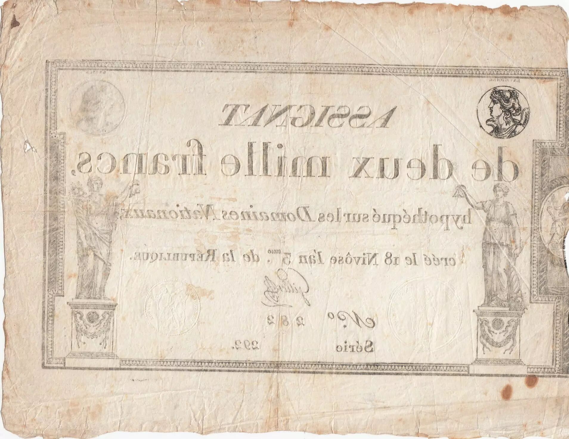 Accueil > Archivage > France 2000 Francs 18 Nivose An III - 7.1.1795 - Sign. Gilles - PTTB