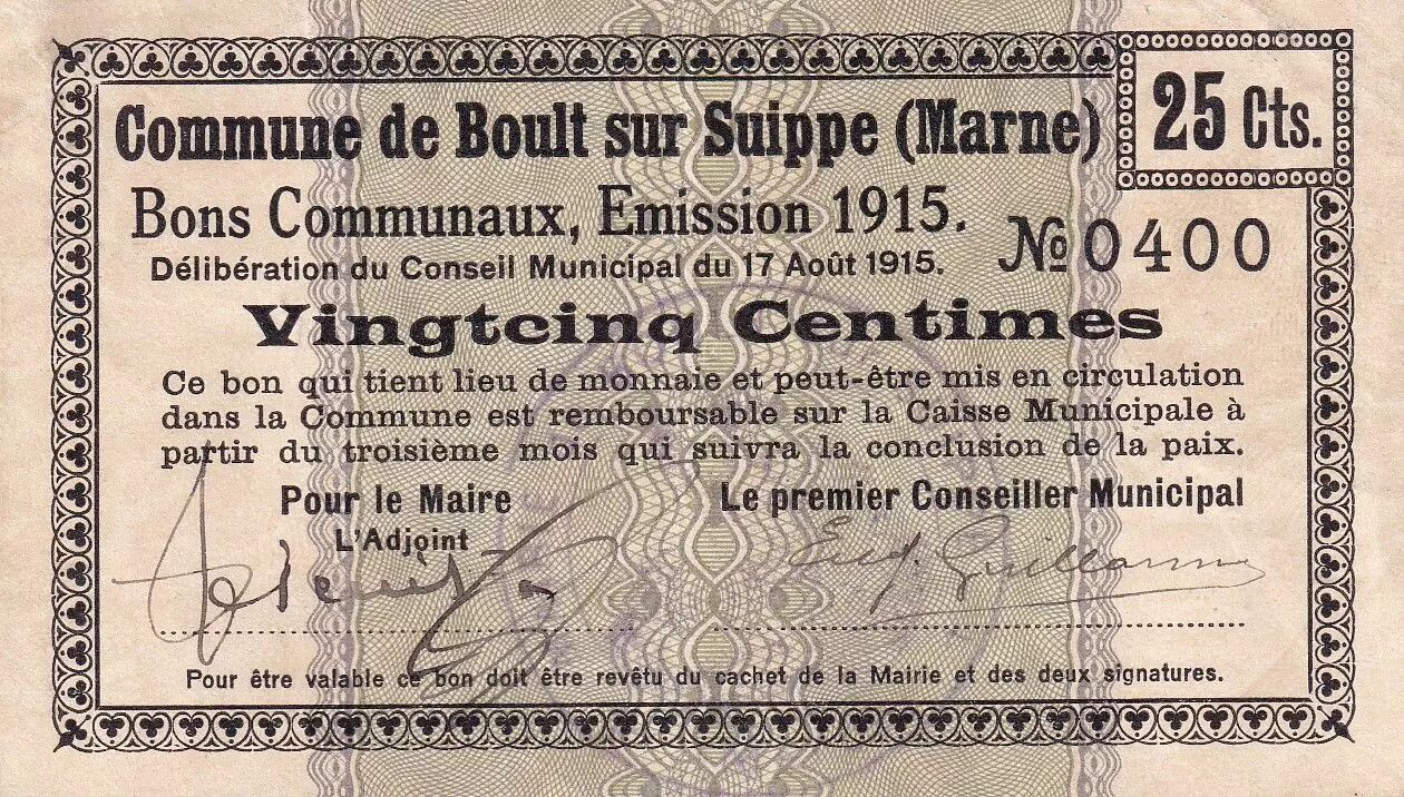 Billet France 25 Centimes - Commune de Boult-sur-Suippe - 1915 - P.51-09