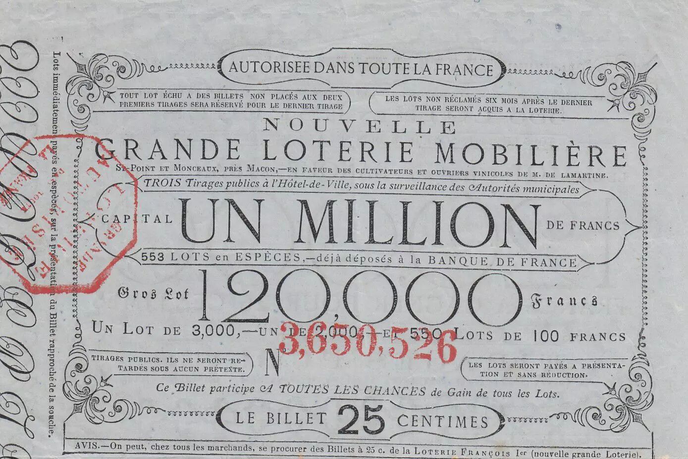 Home > French Banknotes > Lottery (1705- ) > France 25 Centimes Grande Loterie Immobilière St Point et Monceaux - 1862 - VF